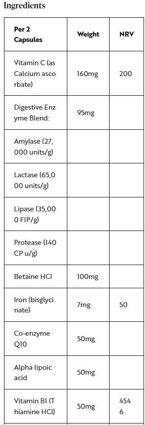 | How to use | As a food supplement take two capsules 30 mins before food. Do not exceed stated dose unless recommended by your healthcare practitioner. Store in a cool dry place, out of the sight and reach of children. Not to be used during pregnancy or lactation unless recommended by a healthcare practitioner This is a food supplement, not to be used as a substitute for a varied diet and lifestyle. |