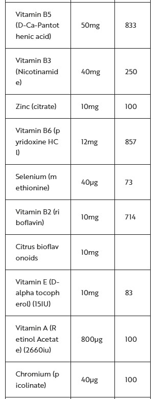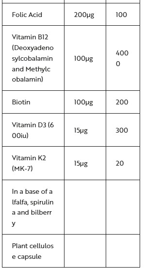 | Ingredients | Per 2 Capsules Vitamin C (as Calcium ascorbate) 160mg In a base of alfalfa, spirulina and bilberry |