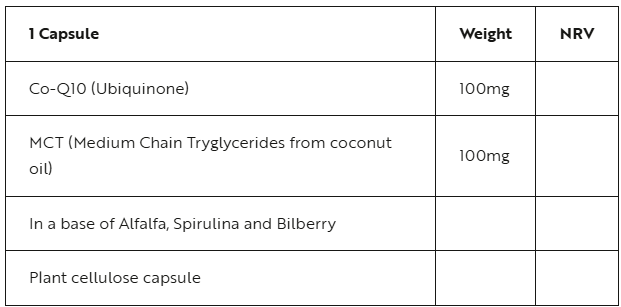 | Ingredients | 1 Capsule Co-Q10 (Ubiquinone) 100mg |