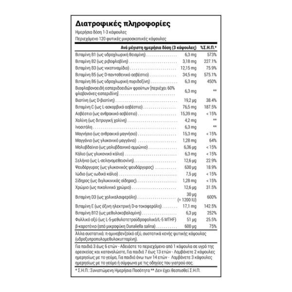 | Ingredients | Supplement Facts – Αmount Per 3 capsules • Vitamin Β1 (as thiamin hydrochloride) 6,3 mg Free from chemical excipients, artificial colourings, artificial flavors, artificial sweeteners, gluten, gmo's. |