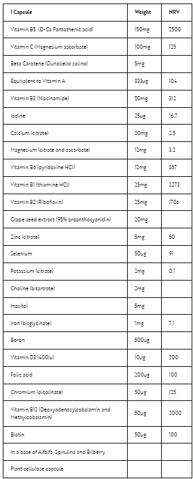 This supplement also features buffered vitamin C, vegan vitamin D, natural source carotenoids, balanced B-complex, fully-reacted chelated minerals including selenium, chromium, iron and zinc. Selenium contributes to normal maintenance of hair and nails, the normal function of the immune system, normal thyroid function and for the protection of cells from oxidative stress. This ‘oxidative stress’ appears to be a major factor in many human diseases. Chromium contributes to the maintenance of normal blood glucose levels.