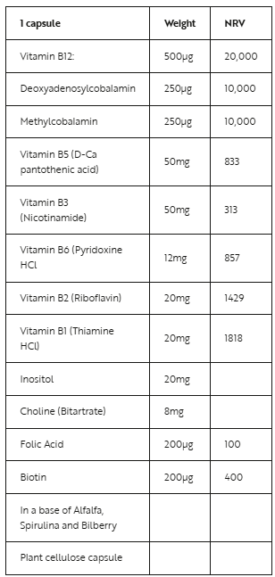 | Ingredients | 1 capsule Vitamin B12: 500µg |