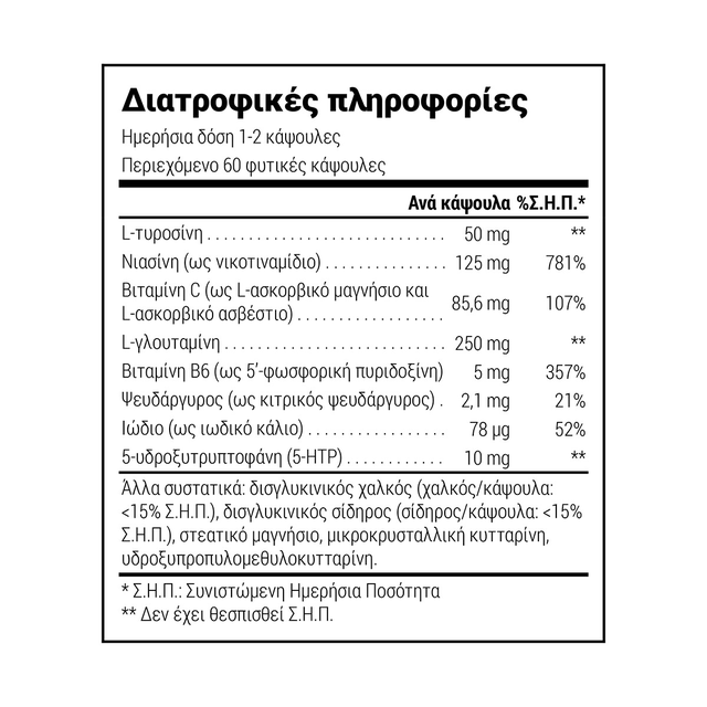 Nutritional supplement to enhance mood, concentration and maintain normal nervous system function, psychological and cognitive function, with griffon seed extract, niacin, and vitamin B6. Suitable for vegetarians.