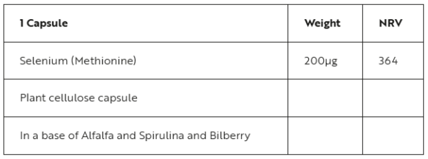 | Ingredients | 1 Capsule Selenium (Methionine) 200µg |