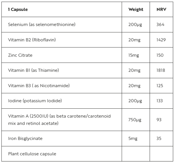 | Ingredients | 1 Capsule Selenium (as selenomethionine) 200µg |